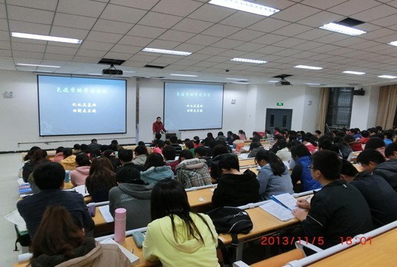 为提高同学们的学习积极性,增强同学们的学习兴趣,11月5日晚在平原新区D1大教室举办了以“如何学好免疫学”为主题的免疫学学习经验交流会,主讲人为我院免疫学教研室主任李万里教授,共200余名师生参加了此次会议。 会议开始,李老师着重强调了学习免疫学的方法:“记忆是基础,理解是关键”,并要求同学们一定要做到课前预习和课后复习,并告诉同学们培养学习兴趣和提高自信是化压力为动力的重要途径。其次,李老师以抗原和机体的免疫作用举例,引出免疫是建立在抗原的基础上的。最后,李老师将免疫学课本的重点知识以表格的形式向同学们进行生动幽默的讲解,并与同学们进行互动。 通过此次免疫学经验交流会,同学们对免疫学这门学科有了更进一步的了解,掌握了许多学习免疫学的方法,增强了同学们学习免疫学的信心,为同学们更好的掌握这门学科打下了基础。