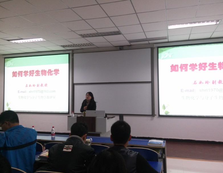 为使同学们了解学习生物化学的重要性,提高同学们学习生物化学的兴趣,11月19日晚,“如何学好生物化学”主题讲座,在平原校区第一教学楼A302举办,本次讲座主讲是生物化学与分子生物教研室石如玲教授,我院400余名师生共同参加了此次讲座。