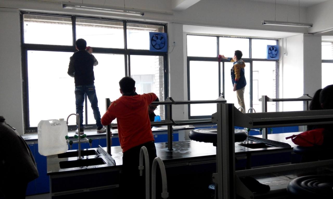 在基础学院老师们的组织下,参加此次活动的各位同学在基础院系楼三楼集合,由实验室老师们对学生进行明确的分工,随后,大家便开始了有序的工作。同学们仔细地清扫了实验室的地面,擦拭了桌椅、橱柜和玻璃,此外,还帮助老师整理了实验器材。室内打扫结束后,同学们还细心清理了走廊的地面、墙壁和护栏。经过大家的辛苦努力,实验楼里焕然一新。