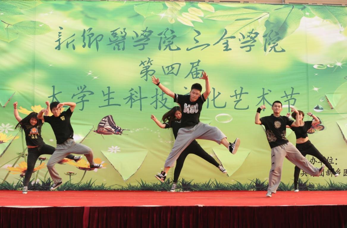 2014年4月23日下午,由我院团委主办,基础医学院团总支承办的“第四届大学生校园科技文化艺术节之街舞大赛”在平原校区篮球场举行。我院党委副书记王金文,团委书记王俊萍,基础医学院党总支书记李健,党总支副书记马苏娟,各院系团总支负责老师以及1000余名学生共同观看了比赛。担任大赛评委的是新乡嘻哈帮街舞俱乐部的四位老师和团委王飞老师。