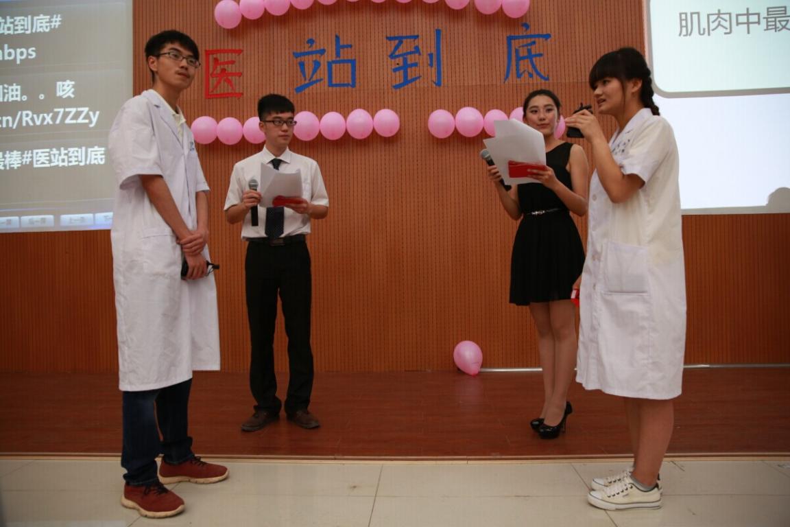 500余名学生经过初赛、复赛的层层选拔,最终共有二十位选手入围决赛。决赛分为“医站到底”、“观众互动”、“技能达人”和“终极战神”四个环节。第一环节选手依次亮相,快速作答,考查学生对医学基本知识和医学生活常识的掌握程度,选手们显示出了强强对决的阵势。在第二环节中场下观众更是摩拳擦掌跃跃欲试,一度将现场气氛推入高潮。第三个环节选手以实战现场演示方式展现了一名医生应有的职业经验及应变机智。第四个环节观众们都屏息凝神,以敬佩的目光目睹了强者之间的巅峰对决。现场气氛热烈,高潮迭起。最后,我院汪小迪最终从二十名选手中脱颖而出,荣获“终极战神”、徐文佩荣获“技能达人”,经过赛前赛中全程学生微博投票,郑蹦蹦以1632票最终摘得“人气之王”。