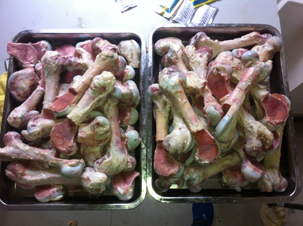 乙未初秋,基础之约。2015级新生大学的第一堂课---军训即将结束,同学们将要步入学习的殿堂。为了确保教学工作平稳、有序的开展,提高教学质量,人体解剖学实验室的全体人员经过一周的忙碌,完成了新鲜猪大腿骨标本的制作。制作过程如下:用手术刀、有齿镊、剪刀等器械把骨表面附着的肌肉、关节、韧带等辅助装置去除,暴露出新鲜的骨膜,然后用钢锯锯断部分骨板,暴露出骨质、骨髓,最后分离出骨膜。此标本可以充分展示骨质、骨膜、骨髓、关节软骨等结构,使同学们对骨的感性认识通过理论学习和实践达到理性的理解。新鲜动物长骨可以补充实验室存放的人类骨骼因时间长而失去活体的色泽、不能展示骨髓等缺点,同时价格便宜、来源丰富,可以长期使用。