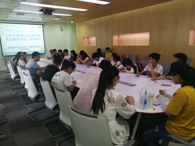 第一党支部书记游永鹤首先就每年学校开展“大学生暑期实践”的情况展开话题,表达基础医学院党支部党员对于帮助同学们设计“暑期社会实践方案”的意愿,并鼓励同学们积极提出自己的问题,尽可能提出解决学生急需解决问题的方案。