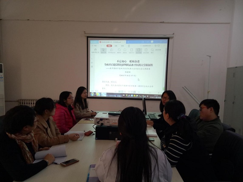 12月18日上午,基础医学院党总支职工第二党支部在基础医学院A306会议室开展了以 “2018-2022年全国干部教育培训规划”为主题的政治理论学习活动。此次活动由支部书记袁欢欢主持,支部全体党员教师参加。