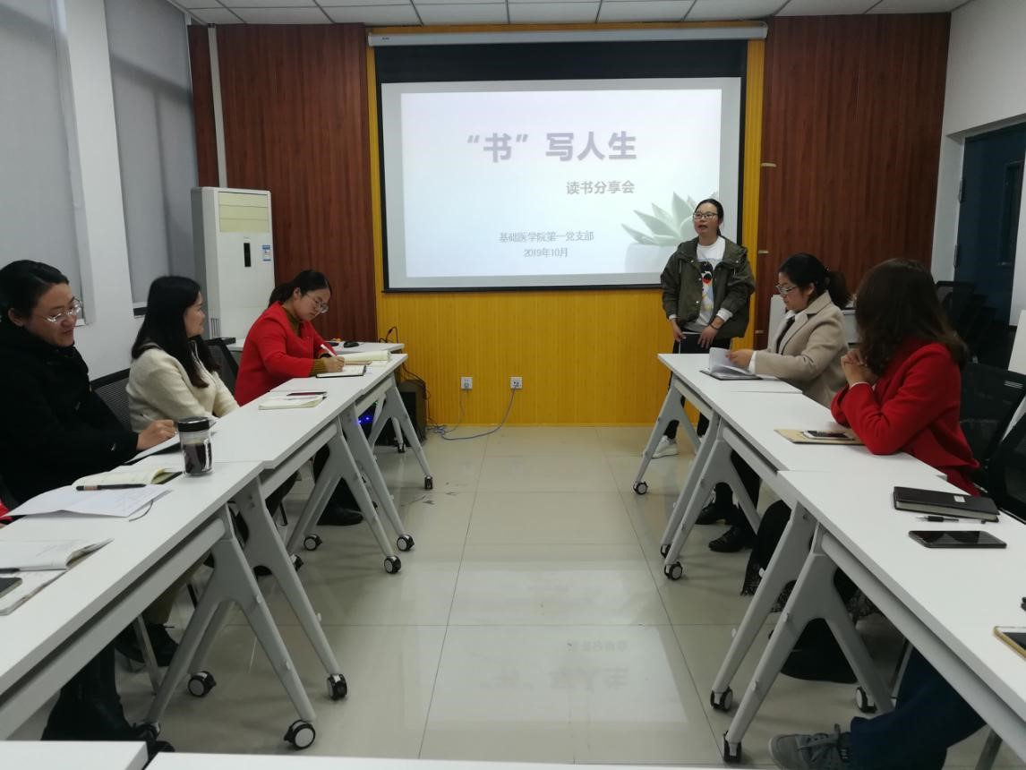 10月16日,基础医学院第一党支部在基础楼A315开展“书”写人生特色党务活动,会议由第一党支部书记郭美霞主持,支部所有无课党员参加。