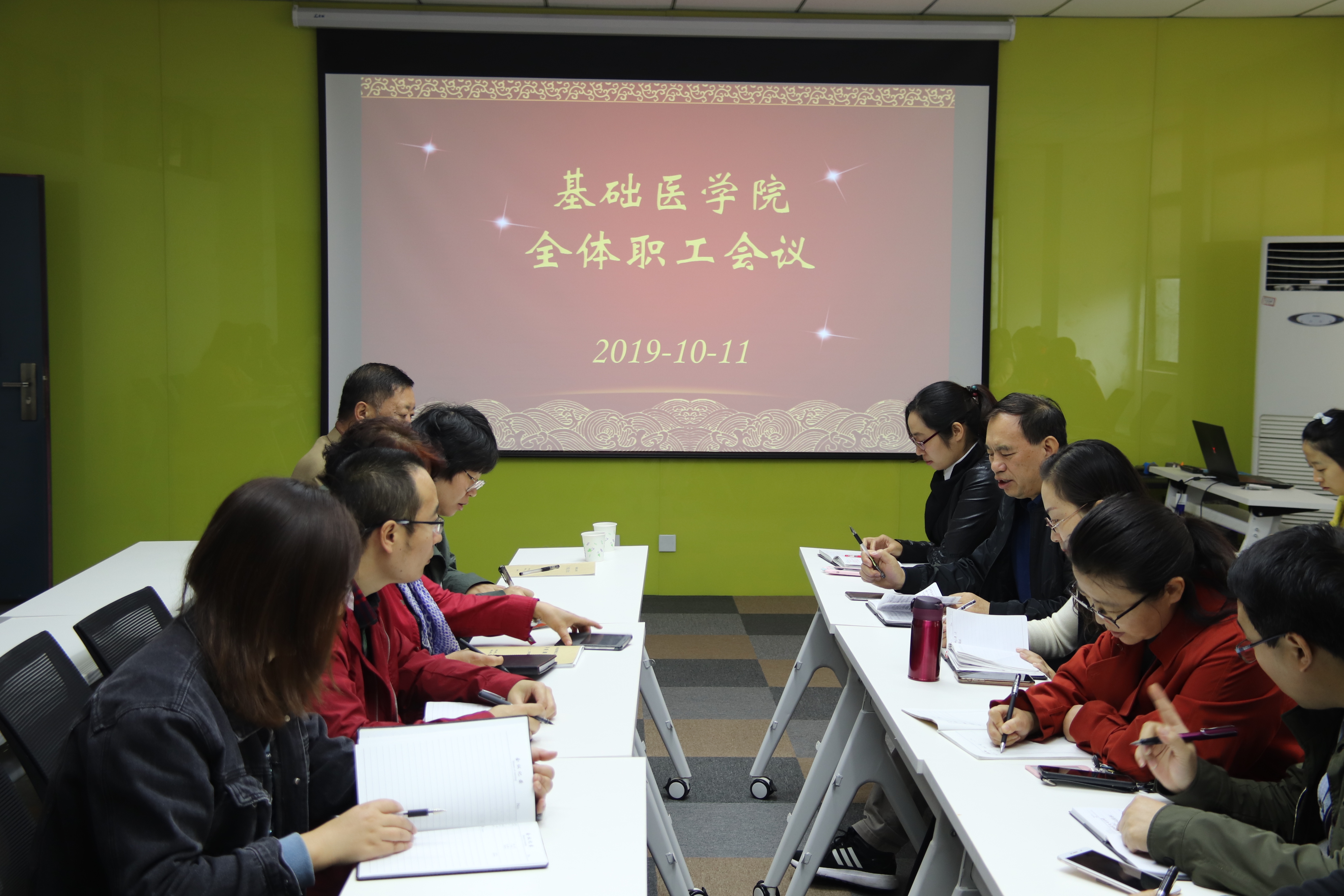 10月11日上午,我院在基础医学院A304召开10月份教学工作反馈会,会议由杨保胜教授主持,党总支书记王俊萍、副院长李勇莉出席本次会议、全体无课教师参加了本次会议。
