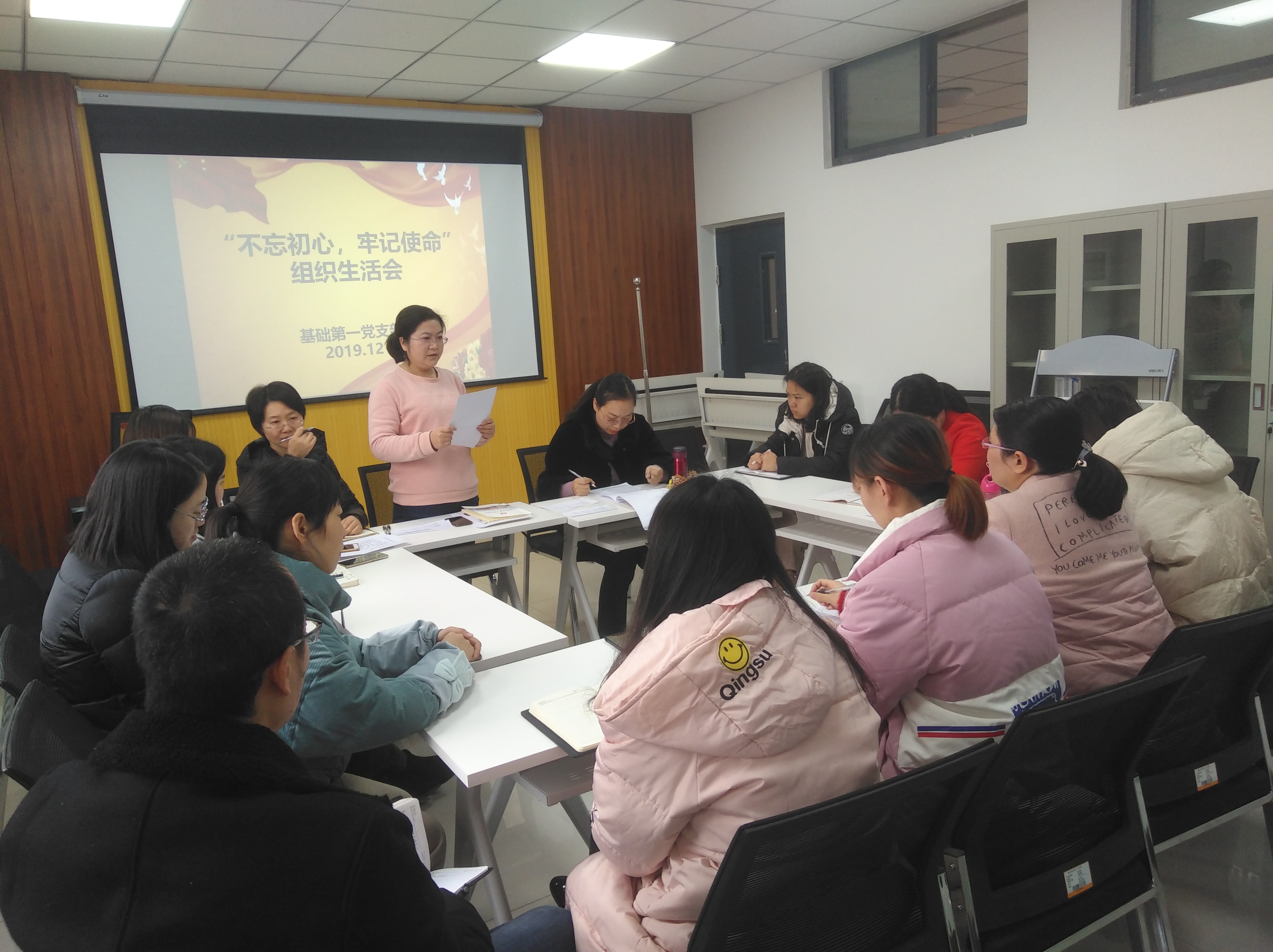 为深入贯彻习近平总书记关于“不忘初心、牢记使命”主题教育重要讲话和重要指示批示精神,12月6日上午,基础第一党支部在基础楼A315会议室召开了专题组织生活会和开展民主评议党员会议。本次会议由支部书记郭美霞主持,16名党员中,1人请假,余15人均参会。