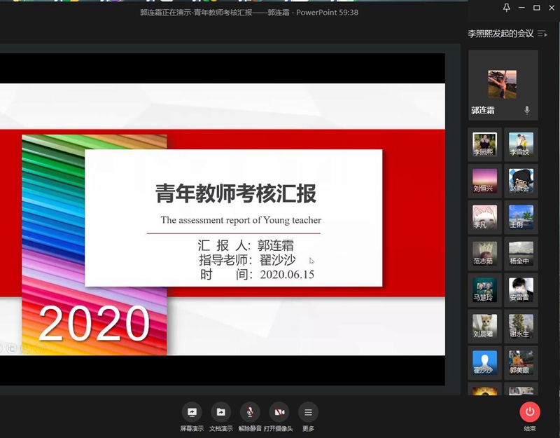目前,我院有在培青年教师共11人,其中8人为培养期第一年,3人为即将培养期满学员;导师10人。本次考核汇报,11位青年教师、10位导师全部顺利通过考核组专家评议。这也标志着我院2019-2020学年青年教师培养工作顺利结束,同时也预示着新一期培养工作即将展开。(文/图 李照熙)
