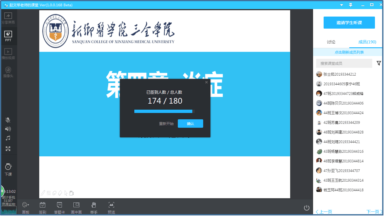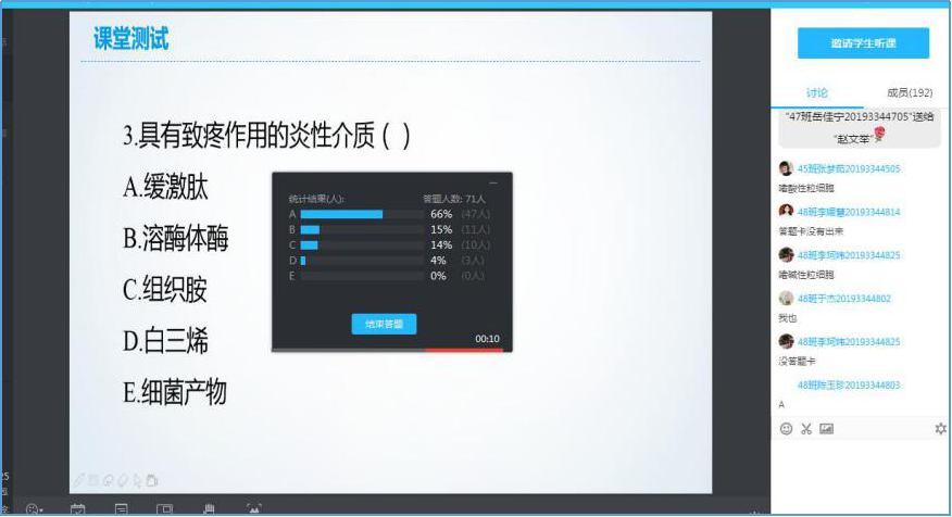 3月17日,病理学教研室网络课程有序展开,开课前,授课教师将PPT、网络资源等学习内容通过雨课堂和优慕课发布给学生供学生预习,上课前20分钟进行腾讯课堂直播调试,在QQ群提醒同学扫码进入课堂学习,并在开课时间前2分钟组织学生签到,在课堂中进行直播授课、推送同步练习题、答疑等,课后也开展有辅导答疑。