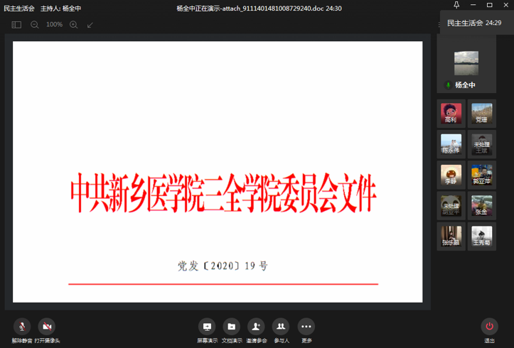 紧接着由党支部书记杨全中带领大家学习党发[2020]19号文件《新乡医学院三全学院关于在全校集中开展以案促改的工作方案》,随后大家关于此次集中学习积极发言讨论。李静表示:从警示案例中可以看出很多领导干部都是从“收一点贿赂”、“给一点人情”,从而一步步走向犯罪深渊。因此,我们要从日常的点滴严格要求自己,从容易出现问题的地方开始防微杜渐。翟沙沙表示:这些典型腐败案例对我们起到深刻的警示作用,在平时的工作中,要时刻进行党风廉政建设的学习,从身边小事做起,做到防微杜渐,远离腐败。