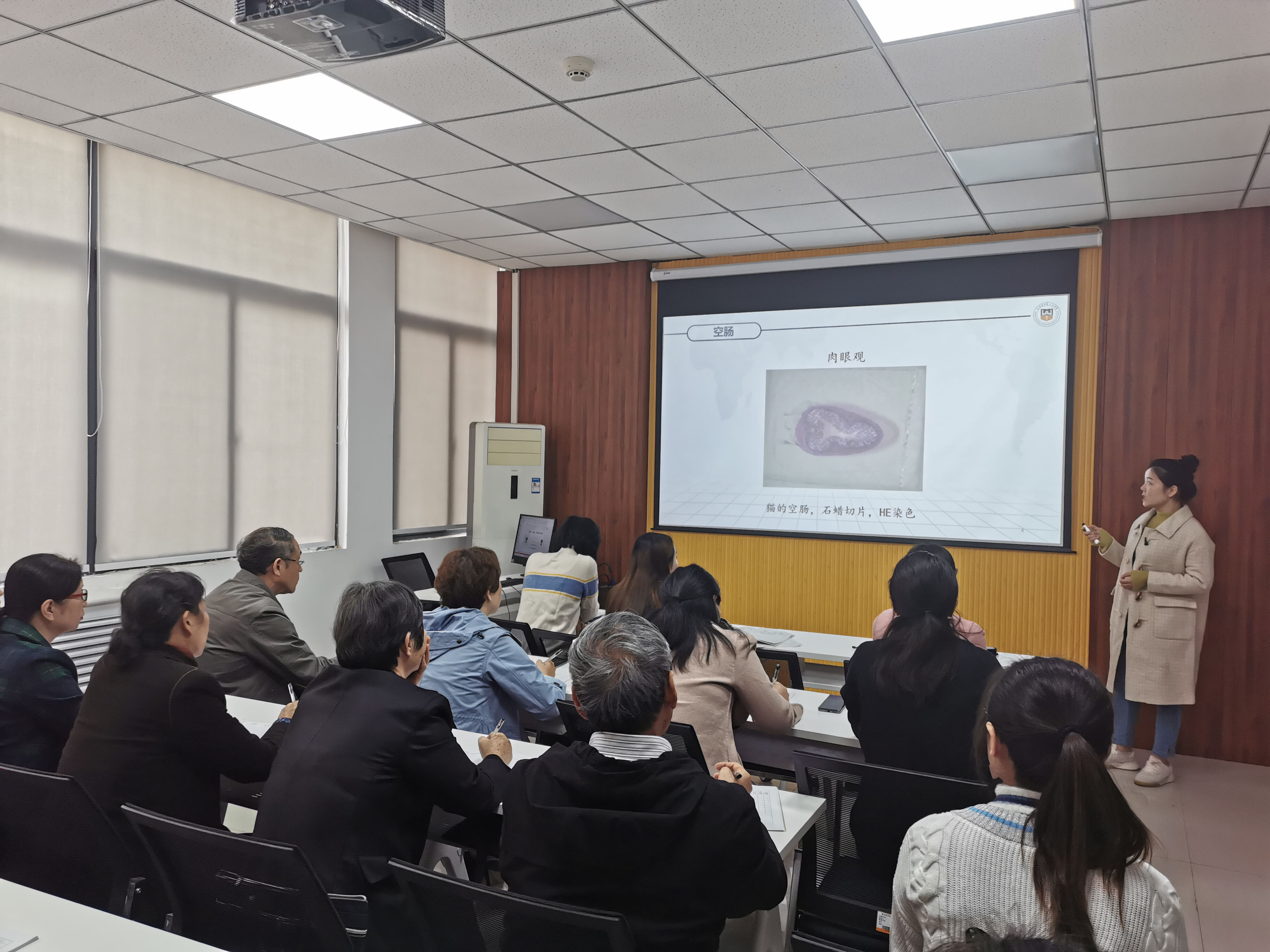 组胚教研室汪旭、党燕梅、耿梦丽、刘一凡四位新教师进行了预试讲。几位教师各有特点,导入自然、结合临床疾病、在教学中充分融入现代化教学手段及思政元素,展现了自己的教学风采。校教务部、督导组教授对四位老师的预试讲进行了点评。董丽教授指出新教师在授课时要注意富有激情,注意讲练结合,优化教学设计,把握好课程进度。赵淑敏教授指出新教师要注意教姿教态,在日常教学展现良好的教师形象,课程中可进一步深化融入课程思政。杨保胜院长一一指出了各位青年教师课件中的格式问题,向他们说明了规范书写、统一格式的新要求,同时也鼓励组织学与胚胎学教研室在实验授课中充分应用虚拟仿真实验平台。