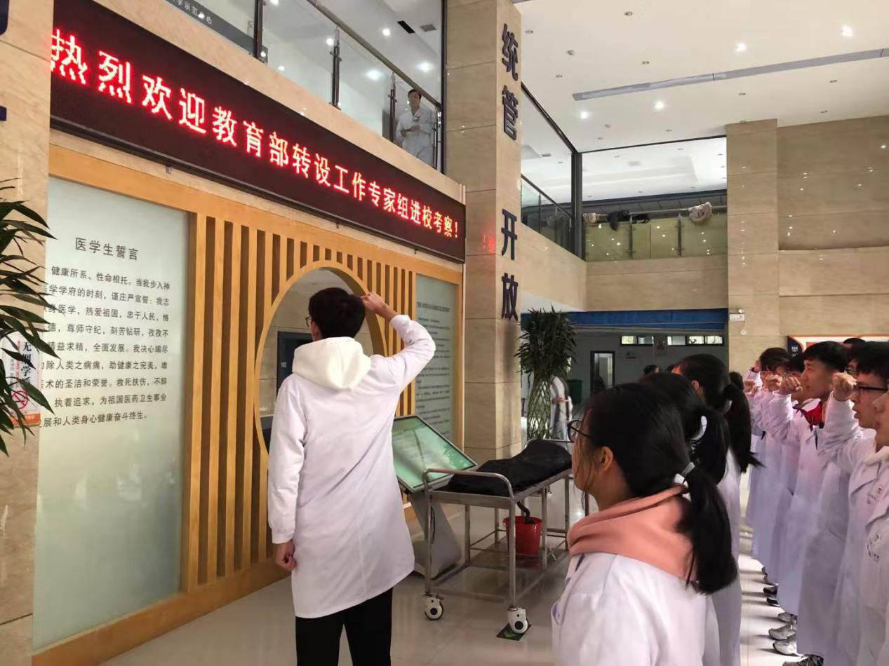 “大体老师”致敬仪式中,人体解剖学教研室副主任鲁明首先发言,向同学们讲解“大体老师”致敬仪式的背景和目的,随后全体学生默哀,来表达对“大体老师”的敬畏,最后全体学生重温医学生誓词,“健康所系,性命相托”,字字念在学生心中,印在学生的日常生活中。