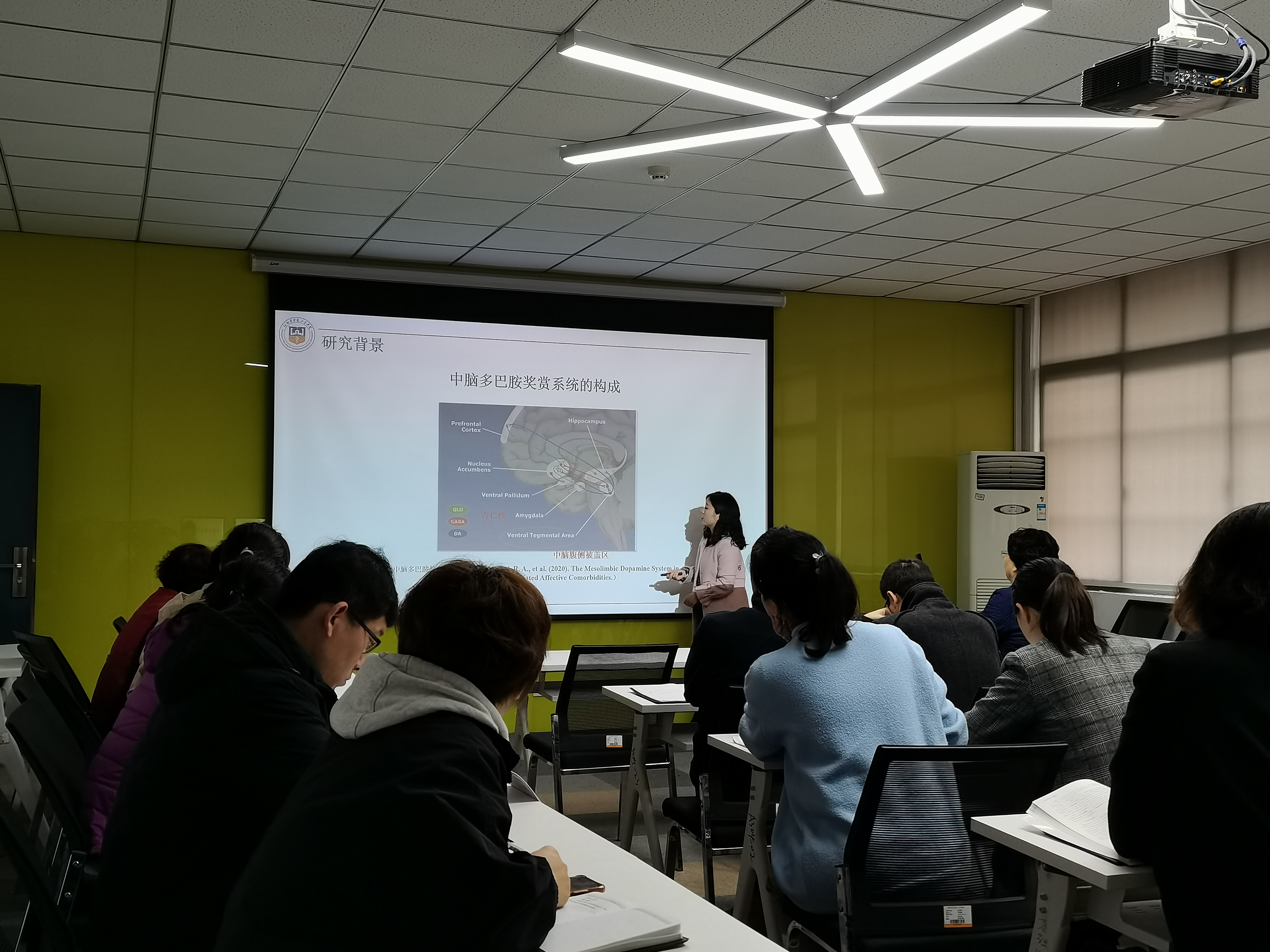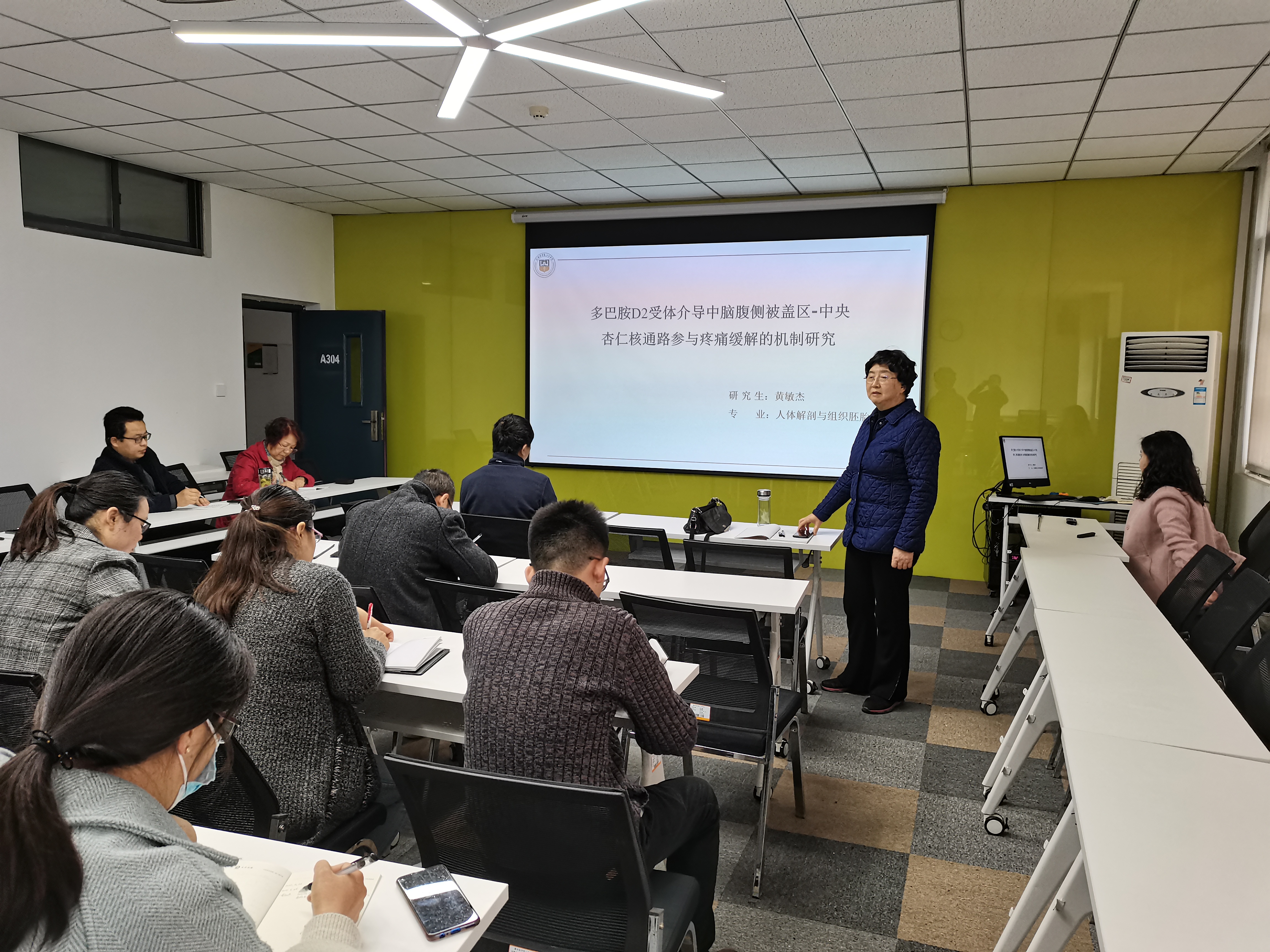 326日上午,人体解剖学教研室主办的“科研大讲堂活动”在基础医学院举行,活动邀请到基础医学院科研副院长张慧英教授及基础医学院全体教师。活动过程中,人体解剖学教研室黄敏杰老师“多巴胺D2受体介导中脑腹侧被盖区-中央杏仁核通路参与疼痛缓解的机制研究”这一科研课题进行了详细的汇报讲解,内容讲述结束后,由张院长总结,参会老师进行了深入的交流和讨论。