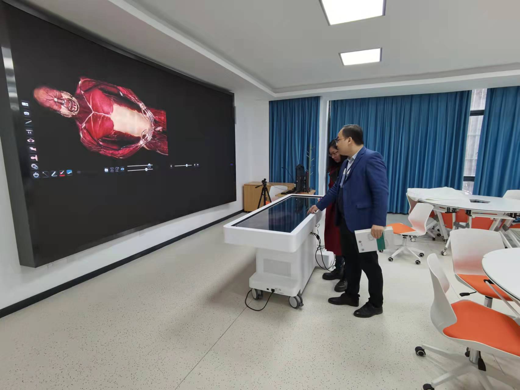 双方共同参观了教学科研设施,体验了人体数字虚拟解剖系统,并且就影像学方面的研究合作进行了探讨。李善杰表示我院师资力量雄厚,基础设施先进,愿意与我院进行长期合作。