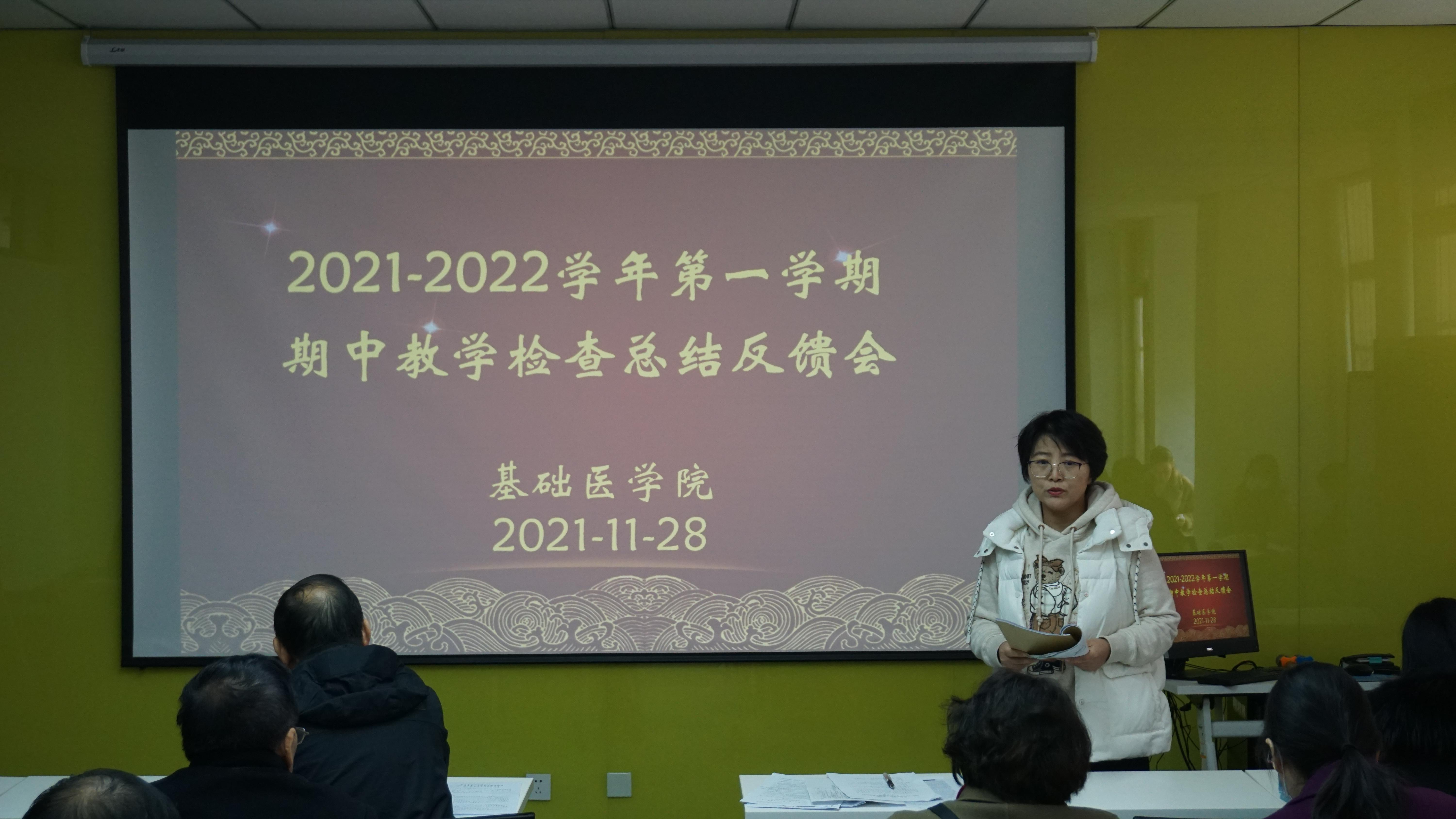 11月28日上午,我院在基础楼A304会议室传达学习学校2021-2022学年第一学期期中教学检查反馈会会议精神。会议由基础医学院李勇莉副院长主持,基础医学院党政领导班子成员及各教研室主任、副主任及教学管理人员参加。