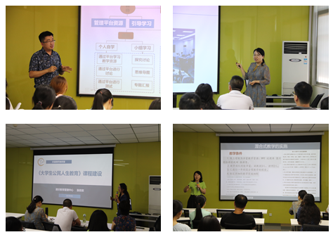 第二部分,四个院系的老师分别和大家分享各自团队的混合式教学经验。医学检验学院常务副院长胡淼为大家展示了自己团队混合式教学课程建设项目的实施情况,以及展示了如何利用现代化通讯和互联网技术进行《临床检验仪器学》线上线下混合式教学。护理学院行政副院长李薇为大家展示混合式教学课程平台内容资源的建设,并分享了混合式教学在妇产科护理学课程中的应用。通识教育管理中心张欢欢老师为大家带来了《大学生公民人生教育》课程建设内容汇报。基础医学院魏慧平老师和与会老师分享了《组织学与胚胎学》混合式教学课程建设中的心得。