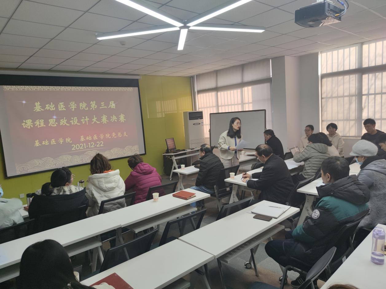 为进一步发挥课堂教学的育人主渠道作用,探索和示范“课程思政”教学的有效途径和方法,基础医学院于12月22日组织举办了第三届课程思政设计大赛决赛。本次决赛由教务员龚宪宇老师主持,基础医学院院长杨保胜,副院长李勇莉、张慧英、苗莹莹,马克思主义学院教学秘书范艳香及各教研室无课教师出席本次决赛。
