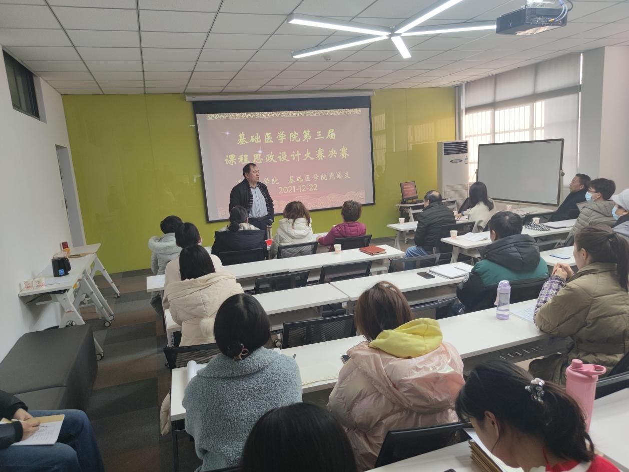 为进一步发挥课堂教学的育人主渠道作用,探索和示范“课程思政”教学的有效途径和方法,基础医学院于12月22日组织举办了第三届课程思政设计大赛决赛。本次决赛由教务员龚宪宇老师主持,基础医学院院长杨保胜,副院长李勇莉、张慧英、苗莹莹,马克思主义学院教学秘书范艳香及各教研室无课教师出席本次决赛。
