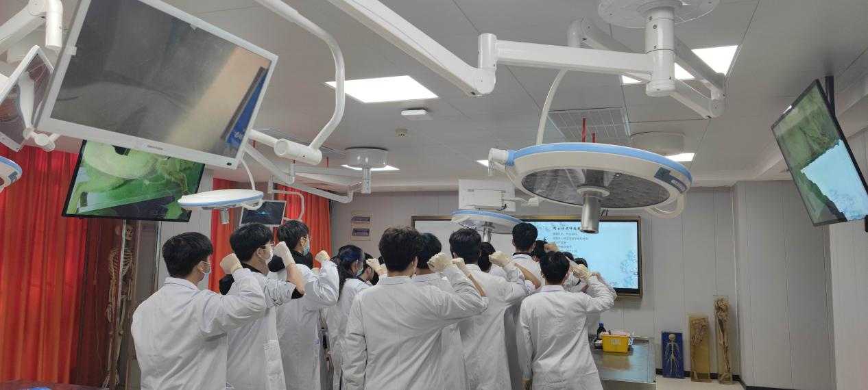 12月14日, 基础医学院人体解剖学教研室在人体解剖学实验室对2021级本科临床医学专业学生进行了创新性动物实验—《淋巴动物实验》。本着思政元素贯穿着专科课学习始终的原则,在实验室课开始之前,本教研室教师带领各实验室学生对实验动物进行默哀,并重温医学生誓词,培养学生关爱生命、医者仁心精神,塑造学生正确的职业素养及价值观,使学生精神境界进一步升华。