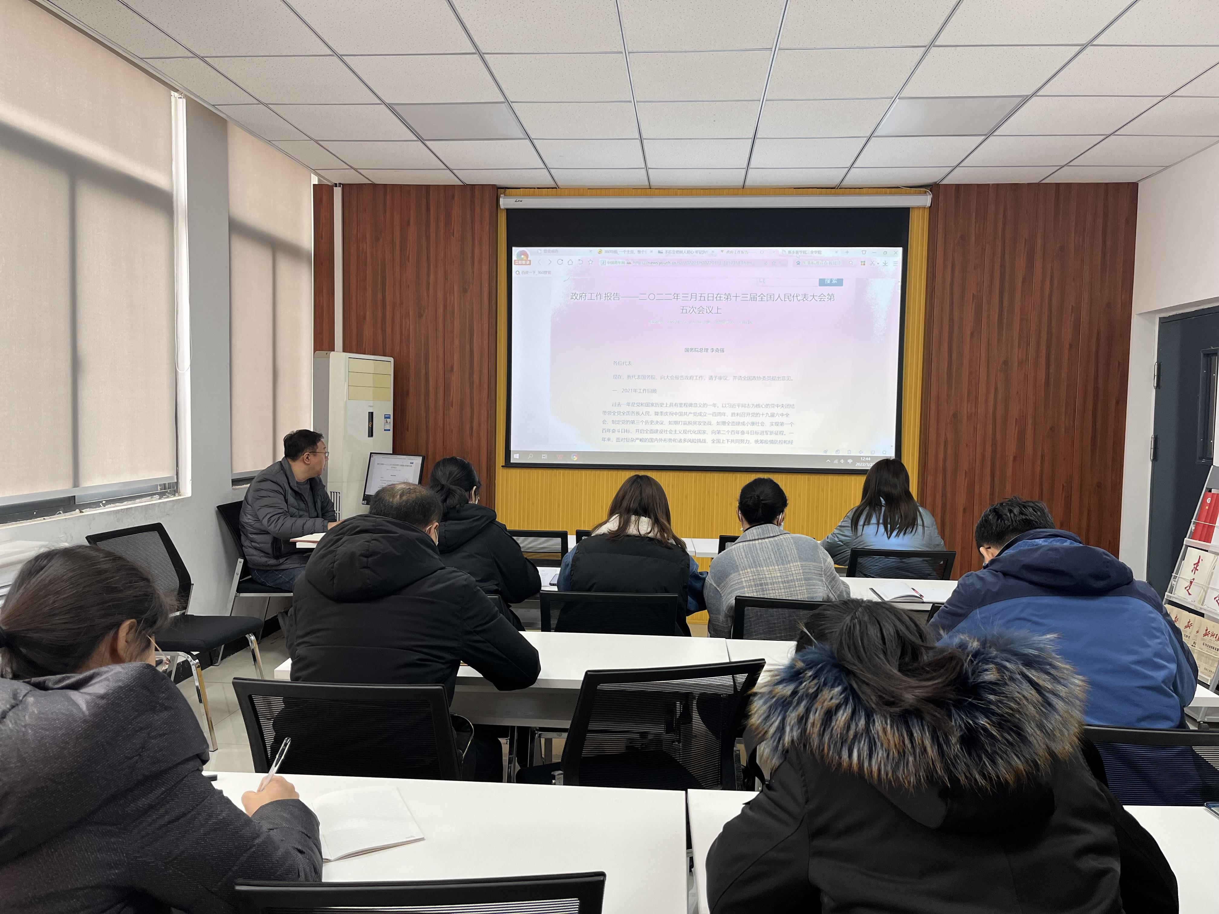 3月22日,基础医学院党总支理论学习中心组在基础楼A315开展3月份政治理论学习,此次学习由组长王林翮主持,对“第十三届全国人民代表大会第五次会议《政府工作报告》”文件进行领学。