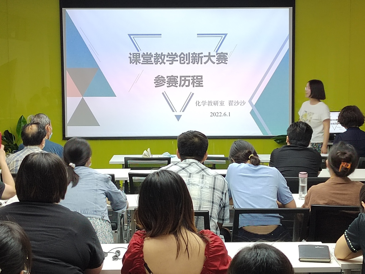 我校第三届河南省本科高校教师课堂教学创新大赛获奖教师翟沙沙做大赛专题报告。首先,翟老师给大家播放了参赛讲课视频,接着翟老师从参赛的心路历程、备赛过程、实例分享和参赛感悟四个方面跟大家进行分享并交流,她结合自己的课程,从“析文件、选内容、巧设计、做课件、听指导、勤练习”六个环节详细介绍了备赛过程中的注意事项和个人体会。