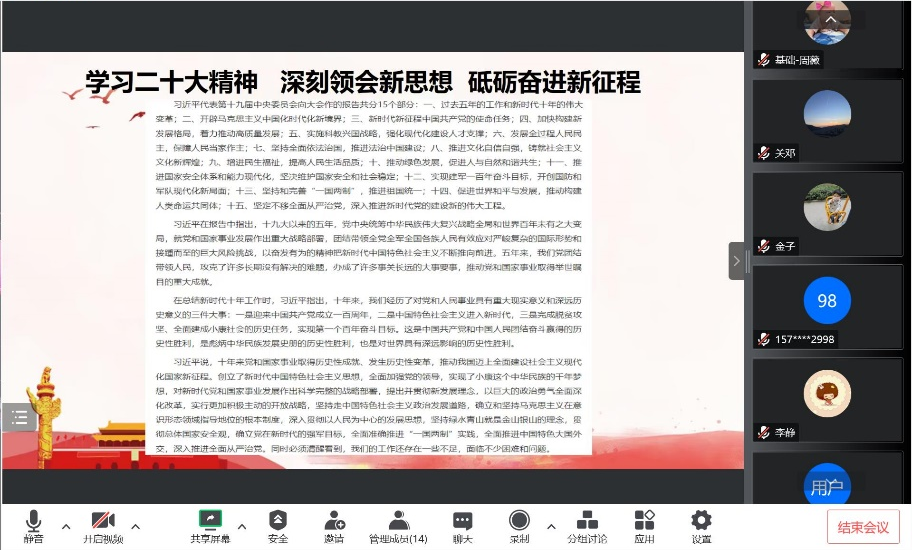 最后,大家纷纷表示收益颇多,要把学习宣传贯彻党的二十大精神作为首要政治任务,把握网络规律,发挥网络优势,在党支部内部迅速兴起学习宣传贯彻热潮,推动党的二十大精神深入人心、落地生根!(文/党珊 图/刘晨曦)