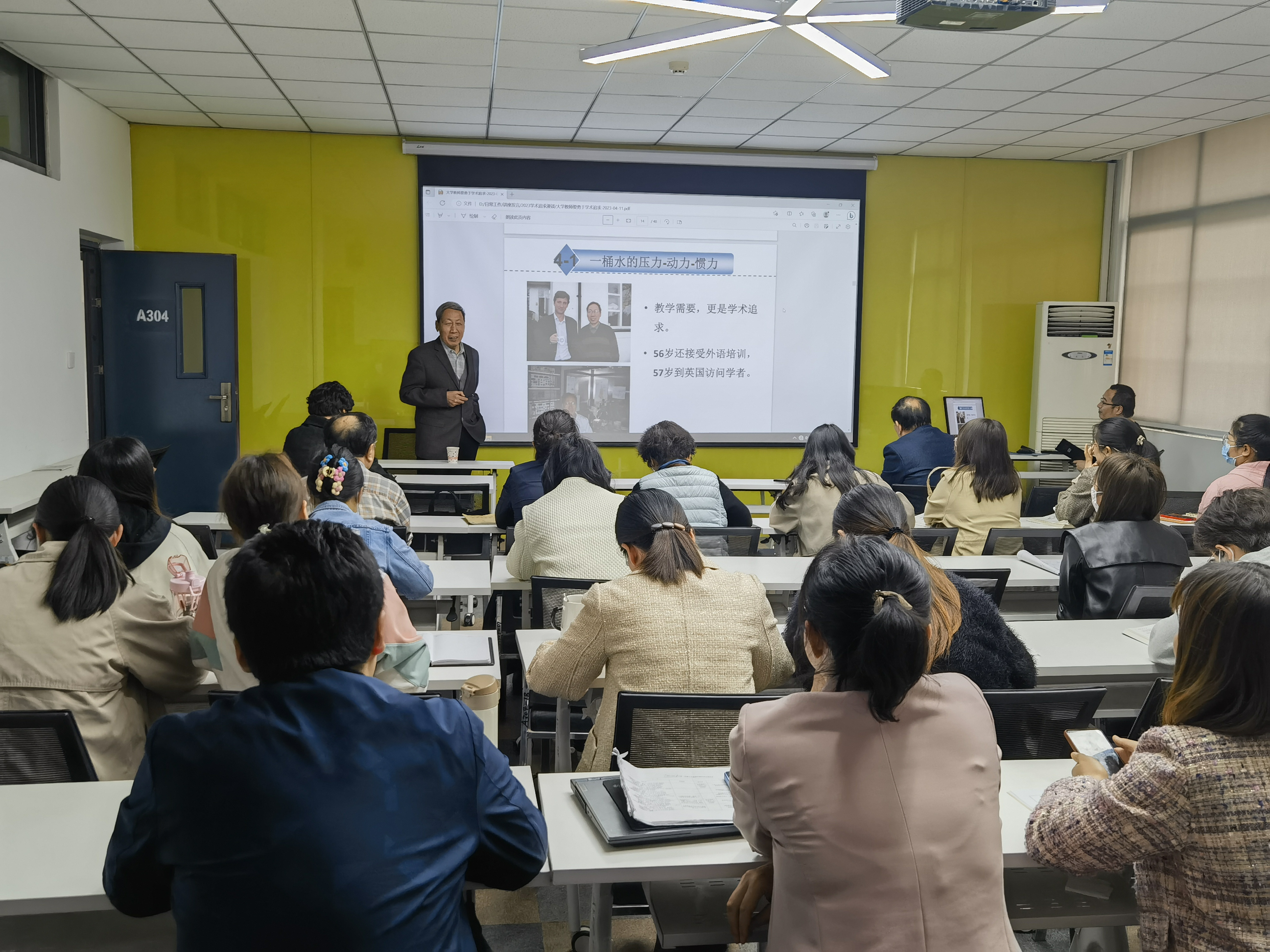 李东亮教授以他自己几十年追求学术的经历和心路历程作为主线,重点围绕“学术追求是我们的职责、学术追求从点滴做起、学术追求需要“五来”、学术追求须有三劲”四个方面,同时结合团队建立以来具体研究工作的选题思路和方法进行了详细的讲解。他在报告中引用习近平总书记“科学研究要着眼长远,不能急功近利,欲速则不达”的讲话精神,谆谆告诫青年教师从事科学研究方向要定下来、心思要静下来、身子要沉下来、性子要缓下来、意志要强起来,摈弃浮躁,静心修炼,潜心钻研,追求卓越,努力成长成为融教师、学者、教育家三位一体合格的大学教师。