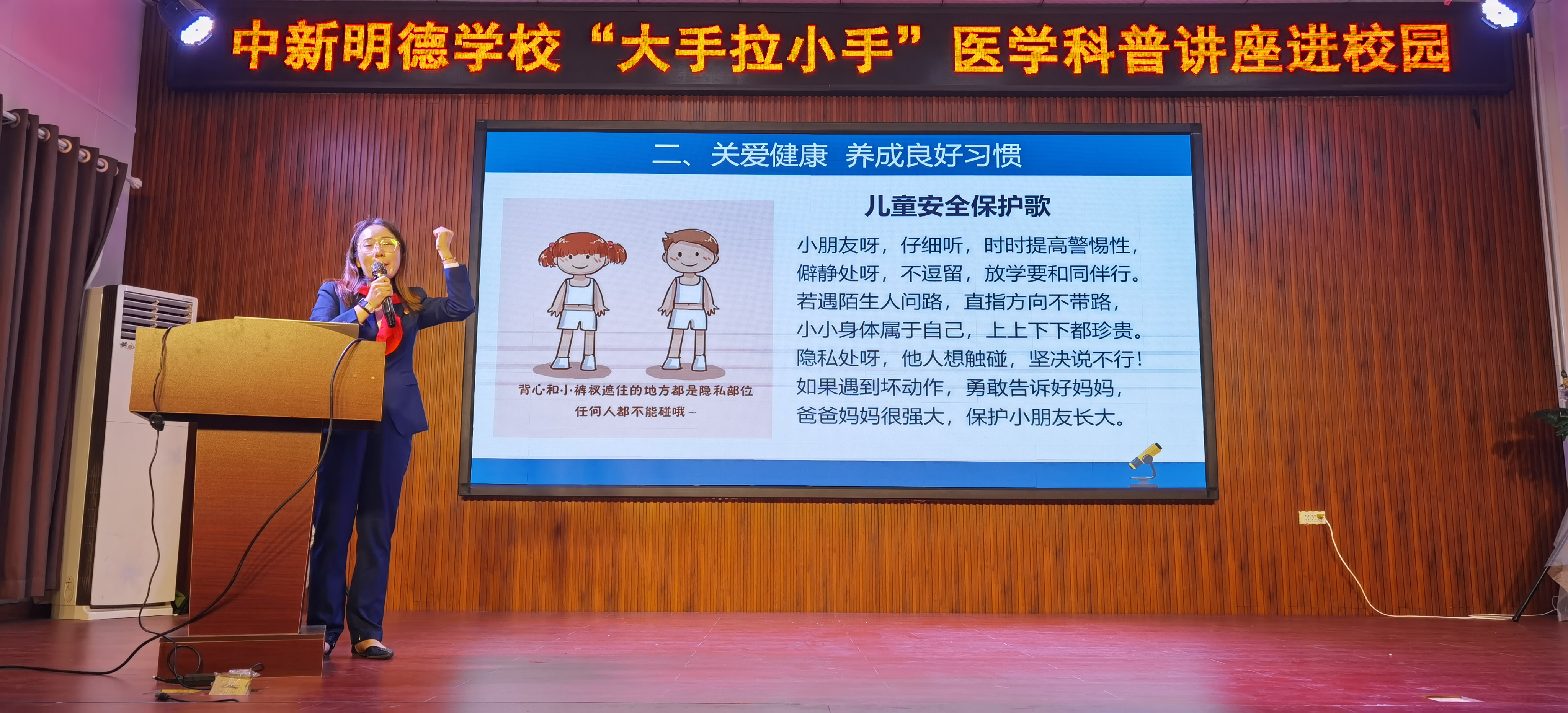 5月18日,基础医学院青年教师耿梦丽为新乡市中新明德学校全校师生带来了一场题目为“讲好生命健康教育这堂课”的医学科普讲座。