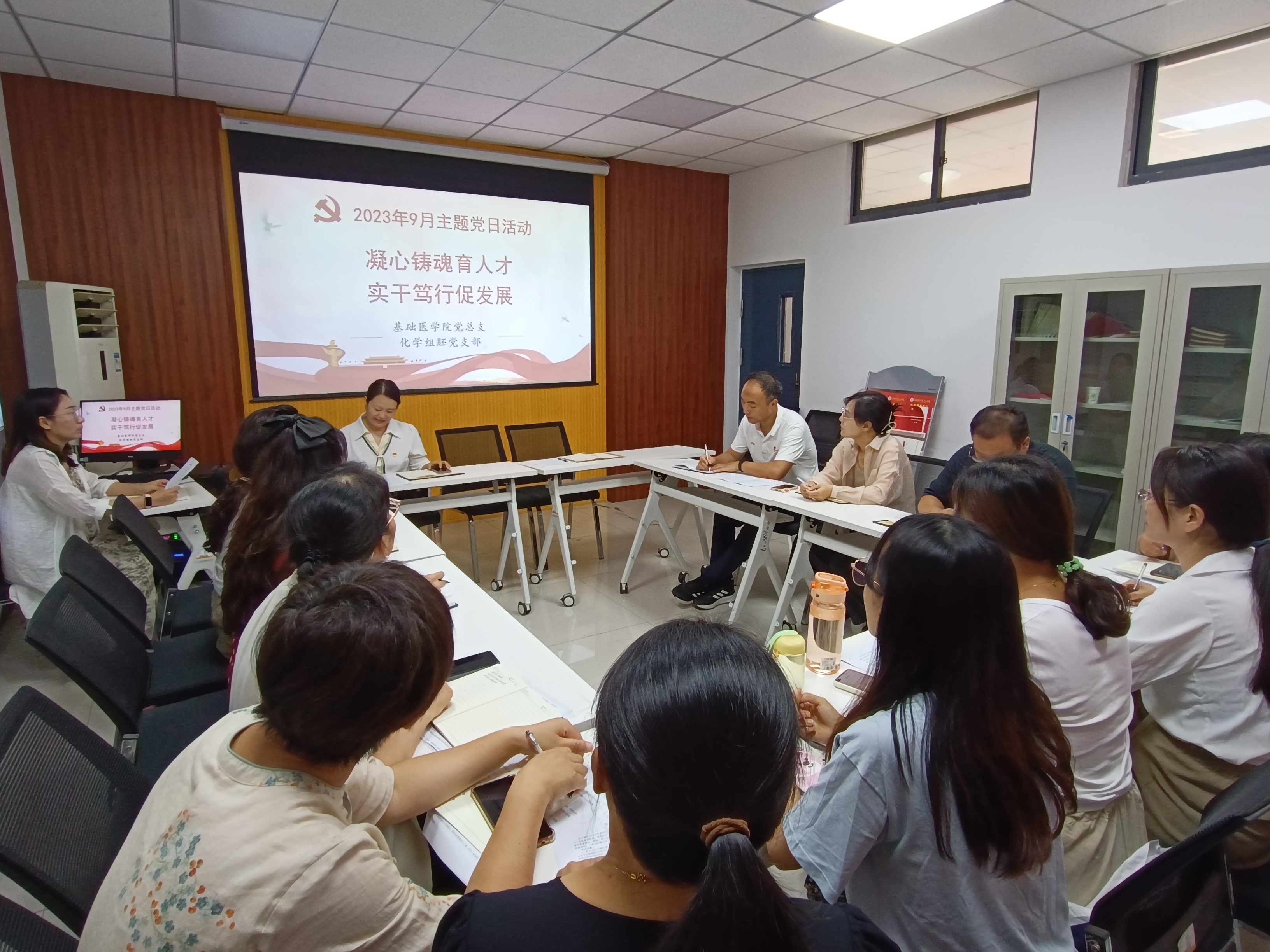 会议首先开展了'凝心铸魂育人才,实干笃行促发展“主题党日活动学习。党支部书记王秀菊同志先通报党员到会及本月党费交纳情况,然后带领大家开展党员理论学习。会议上共学习了《习近平:要对主题教育的实效进行科学、客观评估》、《深入学习贯彻习近平总书记关于党的建设的重要思想 》、《总书记“公开课”自觉反对形式主义、官僚主义》、《求是》杂志发表习近平总书记重要文章《深化党和国家机构改革推进国家治理体系和治理能力现代化》、《求是》杂志发表习近平总书记重要文章《加强基础研究 实现高水平科技自立自强》,并安排全体党员按照学校《关于2023年9月政治理论学习内容安排的通知》,做好相关内容的学习。其次会议开展了支部委员间谈话、支部委员与党员间谈话、党员与党员间谈话,关注全体党员精神面貌与心理健康,结合党员学习情况、学习强国学习情况、党员日常表现及党员谈心谈话,梳理检视问题。会议还开展了批评和自我批评。每位党员在会上结合自己的实际情况,深刻剖析,积极反思,做了深刻的自我批评,党支部其他党员对每位发言党员开展批评,指出问题,并提出改进措施。