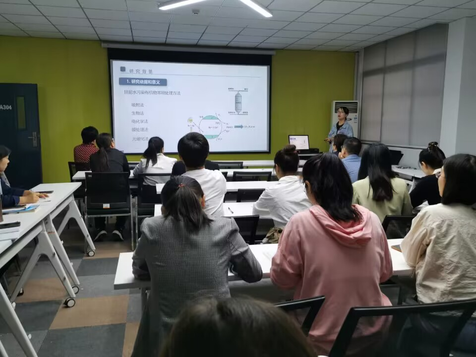 郭亚萍老师结合自身科研经历,围绕“超薄BiFeO3-g-C3N4基异质结纳米材料的构筑及其对抗生素药物废水降解机制研究”主题从选题依据、研究内容、结果讨论、研究意义等方面进行讨论,从纳米材料的构筑、水体中抗生素的去除及降解机理等方面进行详细讲解,成功开发高效、绿色光催化剂BiFeO3-g-C3N4