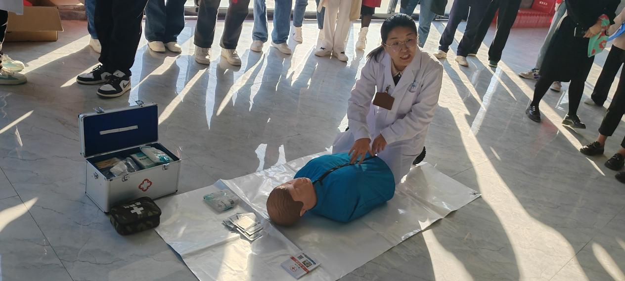 活动现场还设有科普宣传区,基础医学院武辉老师讲解了中医药的医学常识,包括如何科学饮食更有利于健康、怎么区分风寒感冒及风热感冒,哪些穴位可以延年益寿,哪些穴位可以耳聪目明等方面的知识。基础医学院何晓敬老师讲解了关于异物卡喉,紧急规范实施海姆利克急救法的“剪刀、石头、布”的关键三要素,是一种简单易学、效果显著的急救方法。同时讲述了热液烫伤早期急救处理的“冲、脱、泡、盖、送”的五步法则,主要包括“立即冲、果断脱、接着泡、轻轻盖、及时送医”及相关注意事项,从而保护家庭安全每一刻。他们用通俗易懂的语言,结合生活中的实例,让公司员工们更容易理解和接受。此次科普宣传活动受到了公司员工们的热烈欢迎和高度评价。通过这次活动,他们了解到了许多实用的医学知识,对自己的健康有了更全面的认识。同时,他们也感受到了医学高校师生们的热情和关爱,对医学高校有了更深入的了解和认识。