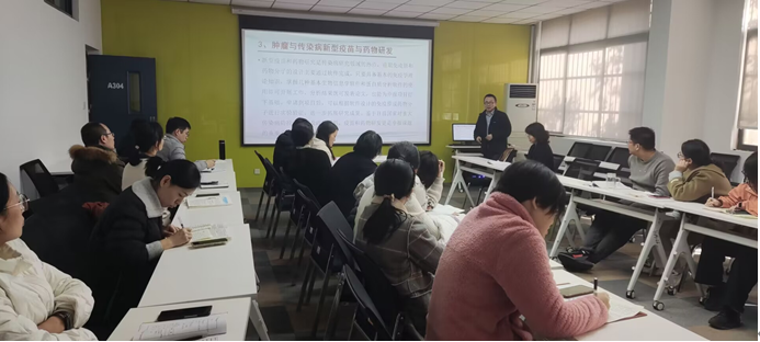 李勇莉教授带领的校级“肿瘤微环境分子干预创新团队”,自2018年创立以来,持续开展科学研究,取得了一定的成绩。李教授详细地介绍了在校级团队项目申报和研究过程中的一些经验和切身体会。在申报过程中,是在学校学术委员会专家的指导下几经调整、不断积累和丰富研究内容才最终获批;在研究过程中,充分发挥团队成员的理论和技术优势,在确保完成教学任务的前提下开展研究工作。李教授详细介绍了团队的部分研究工作,包括研究思路、研究方法、使用试剂、取得的结果,以及需要进一步深入探讨的问题。团队还带领我校本科学生参与到科学研究工作中,指导本科生毕业论文的研究和写作。李教授团队的工作扎实可信,研究目标明确,思路清晰,所应用的研究技术先进,展示的研究图片和统计资料详实,能很好地说明研究的深度和广度及其未来的应用价值。李教授的自身体会深刻,她认为:开展科学研究,虽然万事开头难,但坚持一定会有收获;忧思过多毫无益处,先起跑再调整呼吸,先起飞再调整姿势,想都是问题,做才有答案;教学与科研并驾齐驱,如车之两轮鸟之双翼;一个人可以走的更快,加入团队可以走的更远。接着,团队成员周薇讲师就我校科研平台使用情况进行了分享,同时也对大型仪器管理和使用方面提出了有益的意见和建议。