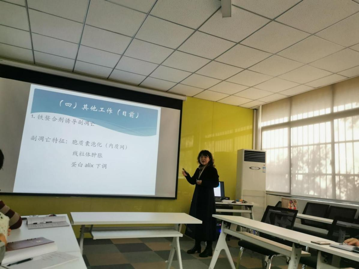 李教授分享后又请团队成员组胚教研室周薇老师就正在使用的学校科研平台情况进行分享,周老师介绍了平台的布局,可共享的实验仪器及所在位置等供各位想做科研的老师参考。会议在张院长的主持下,李教授与在座教师进行充分的交流。