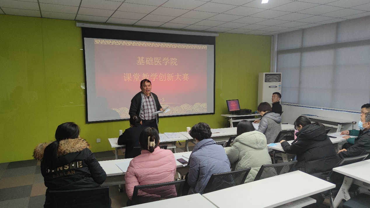1月3日,基础医学院第五届课堂教学创新大赛决赛在励学楼A304举行。本次决赛评委由基础医学院院长杨保胜教授、教学副院长李勇莉教授和科研副院长张慧英教授担任,各教研室主任及代表担任教研室组评委,基础医学院全体无课教师共同参会。