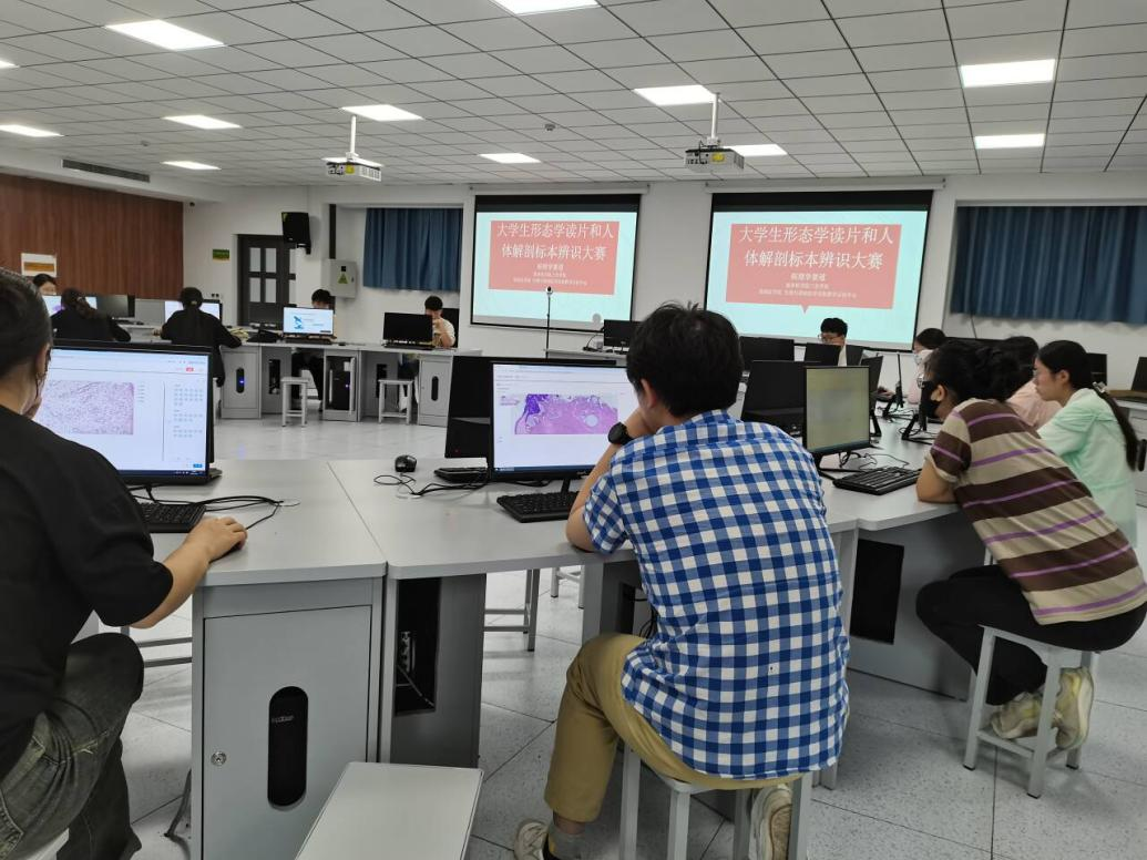 我校共有382名学生报名参加初赛,其中组织学77人、病理学113人、病原微生物学与寄生虫学39人、解剖学132人、综合赛道20人。基础医学院、生物与基础医学实验教学中心负责人积极组织精心筹办,制定培训方案,相关教研室、实验室老师认真落实培训计划,组织学生积极备赛,协调安装考试软件,积极协调线上考场,严格履行监考纪律。经过校内各学科初赛,每个赛道选拔出20名学生参加全国比赛,并对其进行了各学科专业集中培训和指导老师一对一个别辅导。最终,在5月28日进行的全国线上统一比赛的过程中,我校师生克服种种困难,坚持参加比赛,取得优异成绩。本次活动得到了我校教务部、智能医学工程学院等部门的大力支持和配合。