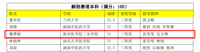 5月31日,全国基础医学形态学实验室主任联席会下发《第二届全国大学生医学形态学读片与人体解剖学标本辨识大赛的获奖名单》,我校师生在本次比赛中荣获“优秀组织奖”,我校师生在本次比赛中荣获“优秀组织奖”、病理学赛道一等奖两名、微生物赛道一等奖一名、解剖学赛道三等奖一名的优异成绩。