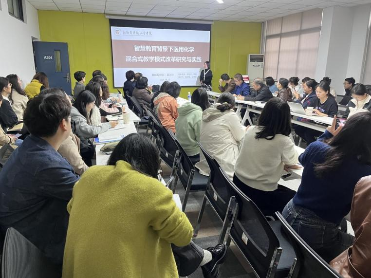 本次活动诚邀基础医学院生物化学与分子生物学教研室陈永伟、基础医学院化学教研室翟莎莎和护理学院人文护理教研室胡绘杰三位教师做大会报告。胡绘杰以“基于学堂云的混合式教学模式在护理伦理学教学中的研究与实践”为题进行报告,重点围绕“三模块六专题”式教学理论设计的教学路径,通过学堂云平台具体实施,同时就本课程对学生能力提升、需求和成效等问题进行了交流。陈永伟以“基于知识图谱的《医学生物化学》混合式教学模式构建及应用”为题,重点从学堂云平台的课程和题库建设、知识图谱的构建、课前导学课堂助学课后督学的教学实施和教学成效四个方面进行了介绍,特别强调了对学生疑问链思维、整体性思维、交互式思维、专题式思维、游戏化思维和众筹化思维的拓展训练效果。翟沙沙介绍了以她本人为项目负责人承担的“2023年度河南省高等教育教学改革研究与实践项目”,研究题目为“智慧教育背景下《医用化学》混合式教学模式改革研究与实践”,研究目的主要在于“如何建设高质量、多样化的混合式教学资源、如何构建智慧教育背景下混合式教学新模式、如何构建课程思政育人体系、如何建立科学合理的课程评价体系”四个方面。该项目已经完成并获得了学校2024年度教学成果奖励,研究成果已经在校内和校外进行了推广应用。