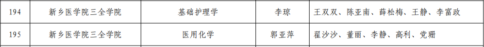 近日,河南省教育厅发布《关于公布河南省2024 年本科高校课程思政示范课程认定名单的通知》(教办高〔2024〕379号),我院郭亚萍老师主持申报的《医用化学》课程被认定为河南省2024年本科高校课程思政示范课程。