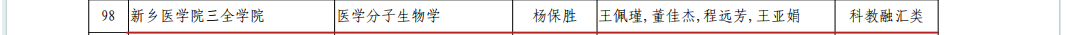 近日,河南省教育厅公布了《2024 年度河南省本科高校研究性教学示范课程和创新实践平台立项名单的通知》(教办高〔2024〕403号),我院杨保胜教授负责的《医学分子生物学》成功获批为河南省研究性教学示范课程。这是2023年杨保胜教授负责的《医学生物化学》后,我院又一次入选省级研究性教学示范课程。