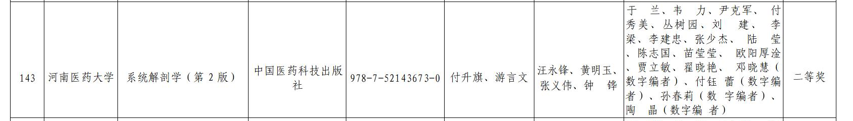 近日,河南省教育厅办公室发布《关于公布河南省教材等级评定结果的通知》(教办思政〔2025〕259 号),我院基础医学院杨保胜教授主编的《医学遗传学(第 3 版)》、苗莹莹副教授参编的《系统解剖学(第 2 版)》双双荣获高等教育类二等奖,彰显我院教材建设与教学改革的显著成效。