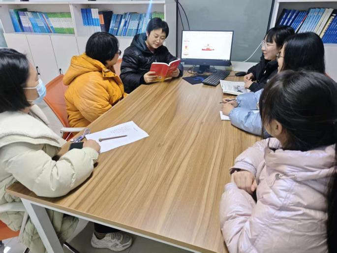 活动第一阶段以“强化理论学习、凝聚思想共识” 为主题,支部书记党珊首先带领支部成员研读了《党的二十届四中全会 < 建议 > 学习辅导百问》,结合河南省发展实际,解读了“十五五” 时期国家战略部署的核心要义,重点阐释了“构建新发展格局、推动高质量发展” 等关键任务与河南实践的结合点。其次,在党珊书记的带领下研读了《习近平谈治国理政第五卷》,通过对“坚持和加强党中央集中统一领导,把党的自我革命进行到底”专题的逐篇研读。党的创新理论不是静态的“理论文本”,而是动态的“实践指南”—— 从第一卷提出 “中国梦” 到第五卷聚焦“全面建设社会主义现代化国家”,从“全面从严治党” 到“健全全面从严治党体系”,理论的每一次丰富都紧扣时代脉搏、回应实践需求。最后,在党珊书记的带领下,学习了中国共产党河南省第十一届委员会第十次全体会议公报。在交流发言环节,支部党员魏慧平指出高校人才培养也需要与时俱进,建议在工作中加强数智技能学习,助力传统教学课堂升级。支部党员刘晨曦感慨“十五五”时期强调发展新质生产力,对高校人才培养提出了更高要求,我们既要提升专业能力,培养创新型人才,更要坚守师德底线,引导学生树立正确的价值观。研讨过程中,大家各抒己见、凝聚共识。
