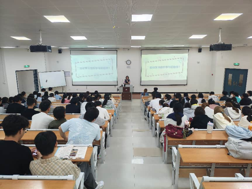 讲座现场同学们认真聆听、记录要点,现场学习氛围浓厚。教师们还结合自身教学经验,解答了同学们关于学习规划、时间管理、线上资源利用等方面的疑问,引导学生养成科学的学习习惯,树立“理解为先、重在梳理、强化应用”的学习理念。