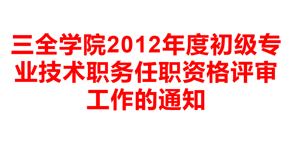 三全学院2012年度初级专业技术职务任职资格评审工作的通知