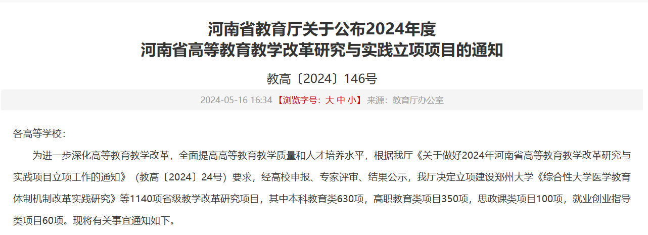 近日,河南省教育厅公布的2024年度河南省高等教育教学改革研究与实践立项项目的通知教高〔2024〕146号,我院李勇莉申报,王亚娟、谢永生、杨保胜等参与的《数字化赋能智慧教育背景下基于知识图谱的基础医...