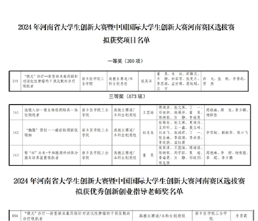 基础医学院在2024年河南省大学生创新大赛中喜获佳绩