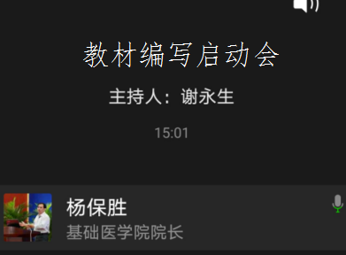 7月10日,基础医学院在微协同平台上召开新版本科创新性实验教材编写启动会,遴选成立教材编写委员会,会议由杨保胜教授主持。会上,杨保胜教授就教材编写的重要性及本版创新性实验教材编写中的一些问题进...